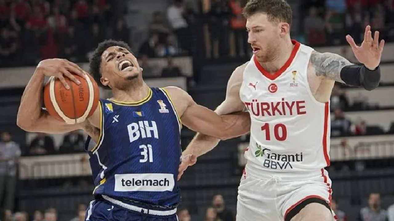 Ay-yıldızlılar, ikinci çeyrekte Onuralp Bitim'in 12. dakikada turnikeden bulduğu basketle farkı çift hanelere çıkardı: 31-20. Altı oyuncusundan aldığı skor katkısıyla toparlanan Bosna Hersek, ikinci periyodun bitimine 29 saniye kala farkı 1 sayıya indirdi: 46-45. Milli takım, soyunma odasına 46-45 önde gitti.