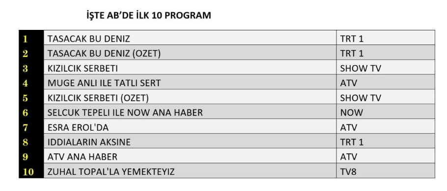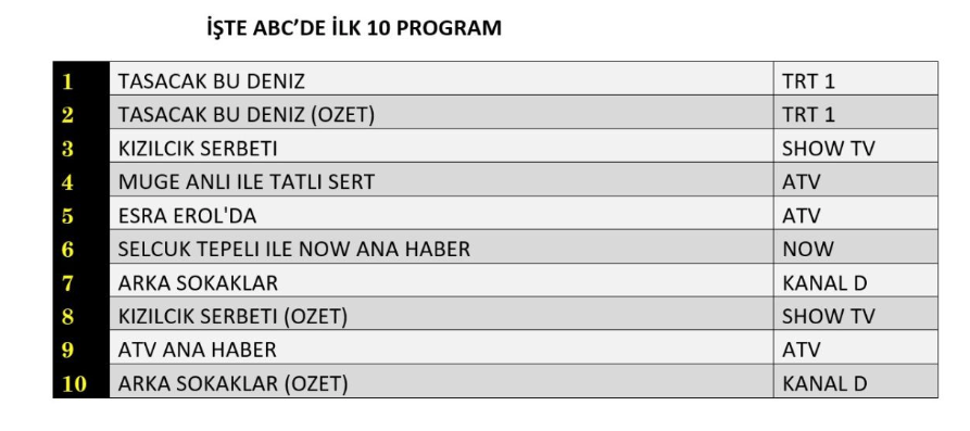 Kızılcık Şerbeti ise önceki haftaya göre reytinglerini artırarak dikkat çekti. Arka Sokaklar ise ekran başarısını koruyan diğer yapım oldu.