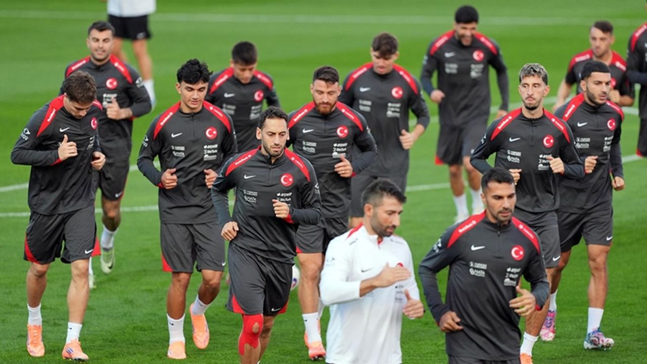 Riva'daki TFF Hasan Doğan Milli Takımlar Kamp ve Eğitim Tesisleri'nde 15 dakikası basına açık olan idmanda ay-yıldızlı ekip, ısınma koşuları sonrası çeşitli pas çalışmaları gerçekleştirdi.