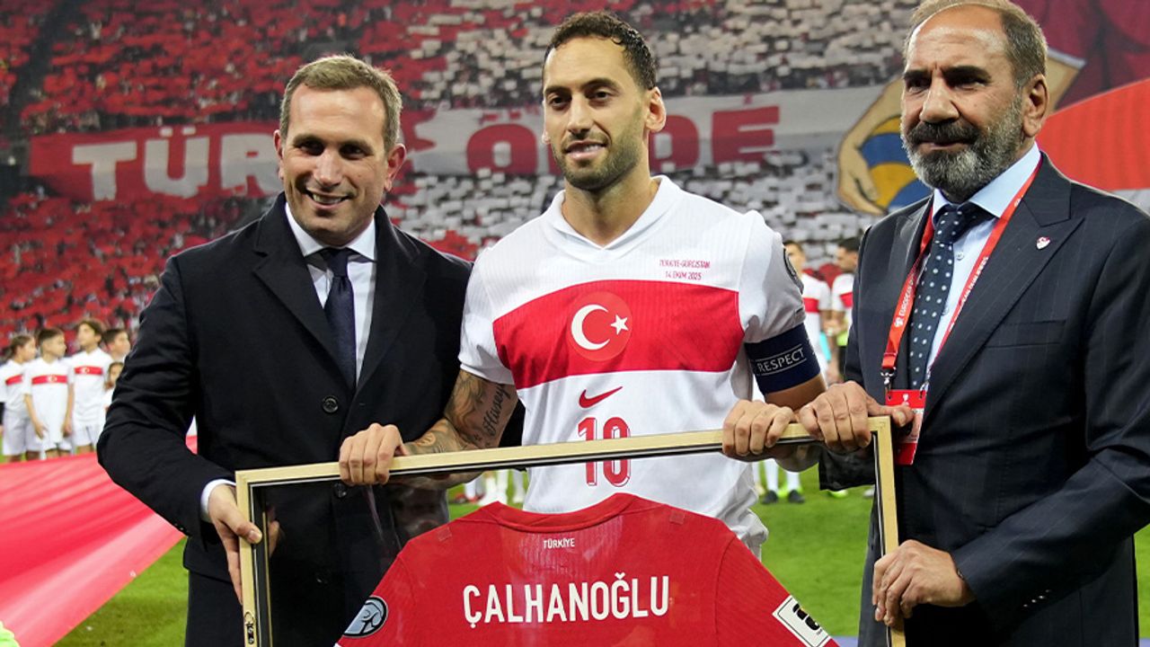 A Milli Futbol Takımı, 2026 FIFA Dünya Kupası Avrupa Elemeleri E Grubu 4. maçında Kocaeli’de Gürcistan ile karşı karşıya gelirken, müsabaka öncesinde Kaptan Hakan Çalhanoğlu onurlandırıldı. Bulgaristan mücadelesiyle ay-yıldızlılarda 100. maçını oynayan Çalhanoğlu’na Gürcistan karşılaşması öncesinde saha kenarında Türkiye Futbol Federasyonu Başkan Vekili Mecnun Otyakmaz ve Türkiye Futbol Federasyonu Genel Sekreteri Abdullah Ayaz, plaket takdim ederken ayrıca çerçeveletilmiş şeklinde üzerinde 100 yazan milli takım forması verildi.
