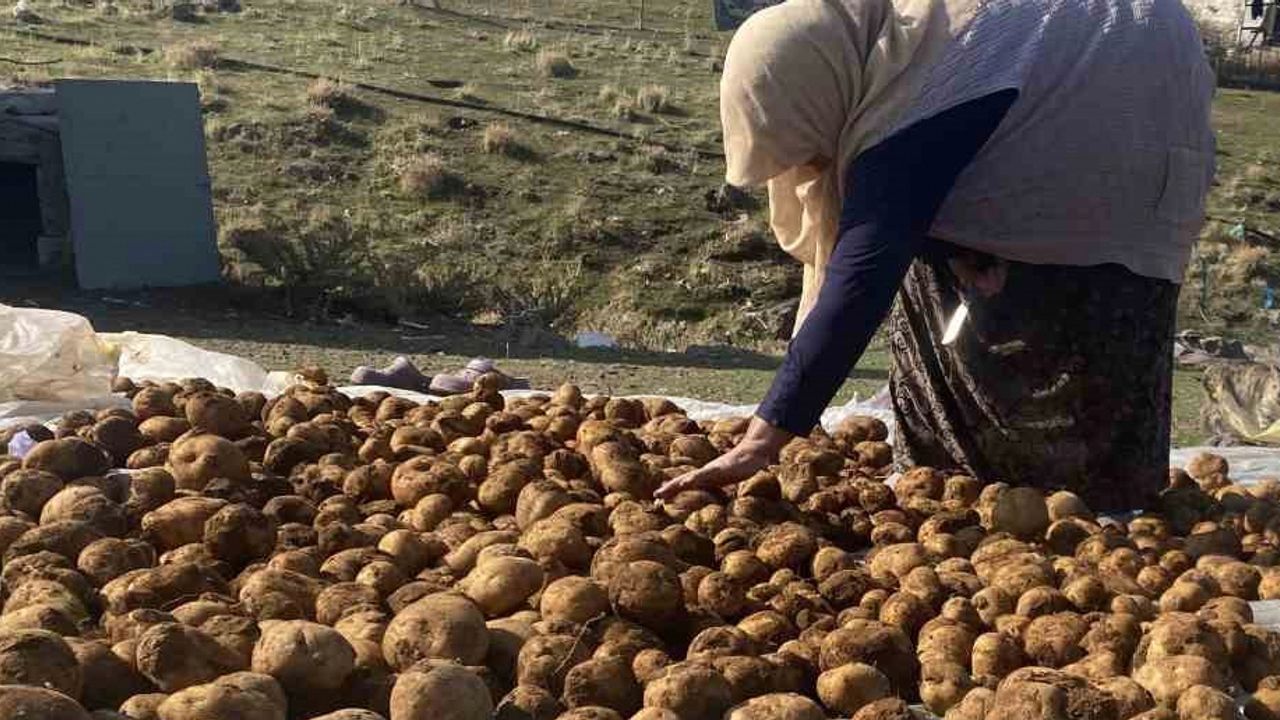 Ev hanımı Gülseren Yaka, tarlalardan getirilen patateslerin önce ev bahçesinde serilerek çürük ve nemli olanların ayrıldığını belirtti. Ayıklama işleminin ardından sağlam patateslerin bir süre güneşte kurutulduğunu ifade eden Yaka, asıl koruma sürecinin toprağa gömme aşamasıyla başladığını söyledi.