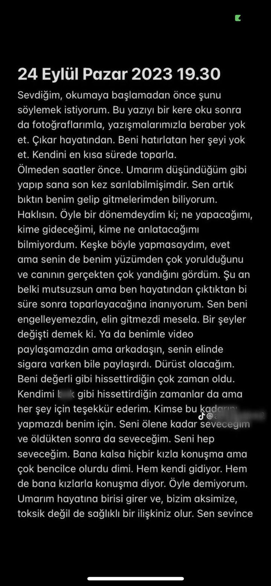 Açelya'nın telefonundan sevgilisine bıraktığı not ise dikkat çekti. Genç kızın, "Umarım düşündüğüm gibi yapıp sana son kez sarılabilmişimdir. Seni çok özleyeceğim. Her ne olursa olsun, iyi ki hayatıma girdin. İyi ki böyle bitti." ifadeleri kahretti.