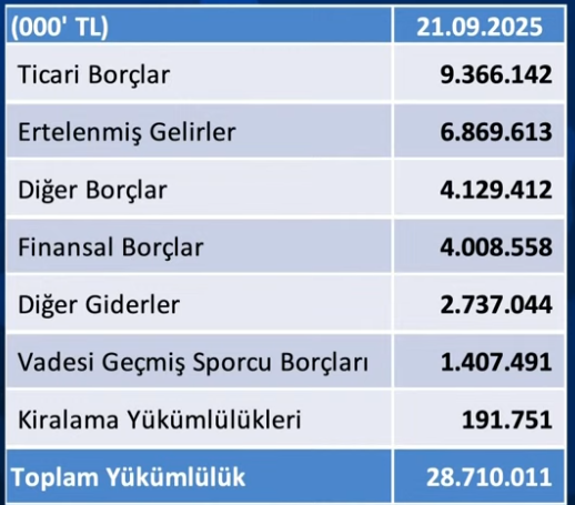 "Diğer borçlar kalemindeki rakamın 3 milyar 510 milyon lirası Ali Koç'a şahsi borçtur. Kendisi her fırsatta 'Benim herhangi bir alacağım yoktur.' demiştir. Bağımsız denetim firması resmi kayıtlarda doğal olarak bunu borç olarak yazmak durumunda. Allah uzun ömür versin ama emri hak vaki olduğunda resmi olarak borç kaldığında bu durum varisleri de etkileyebilir. Kendisi vergisel, mevzuatsal dayanağını oluşturarak varisleri de bağlayacak şekilde kulüpten alacağı olmadığına dair beyanat vereceğini bana iletti."