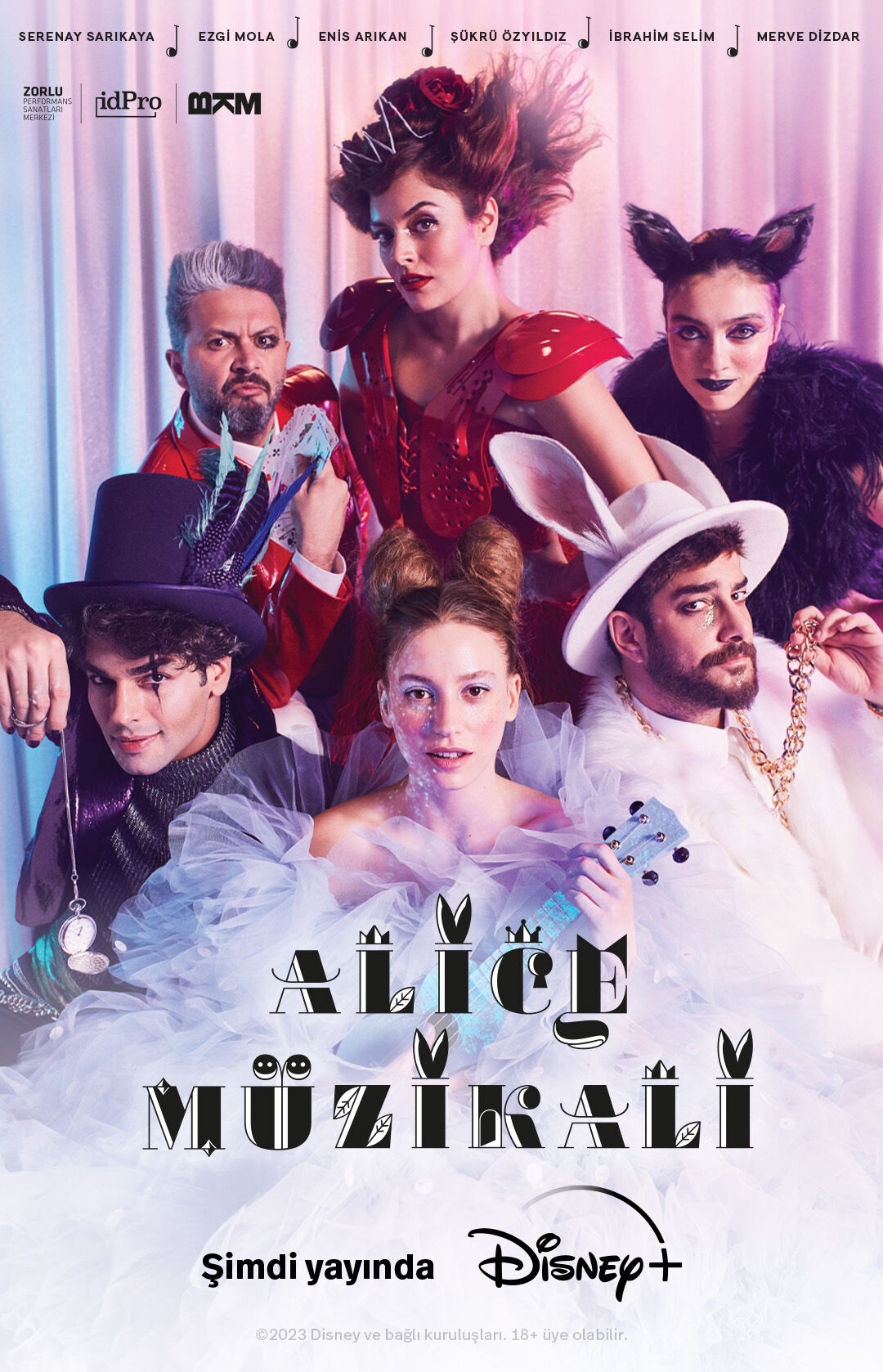 Yıllardır kapalı gişe devam eden ve övgü dolu yorumlar alan ‘Alice Müzikali’nin zengin oyuncu kadrosunda; Serenay Sarıkaya “Alice”, Ezgi Mola “Kraliçe”, Enis Arıkan “Tavşan”, Şükrü Özyıldız “Şapkacı”, İbrahim Selim “Kral”, Merve Dizdar ise “Kedi” karakterine hayat veriyor.