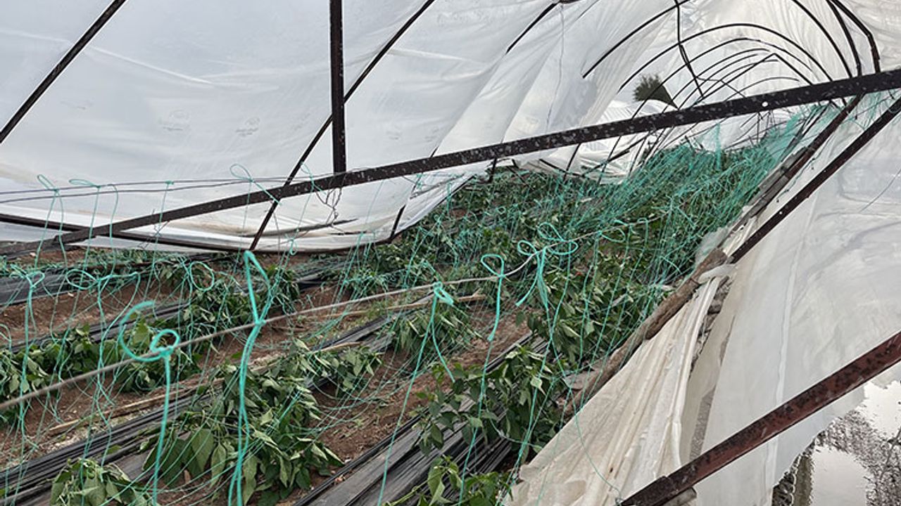 Antalya’da Yavruoğlan ve Gündoğdu mahallelerinde meydana gelen hortumda, 4 seranın demir aksamları kırıldı, çatıları çöktü ve naylon kaplamaları parçalandı.