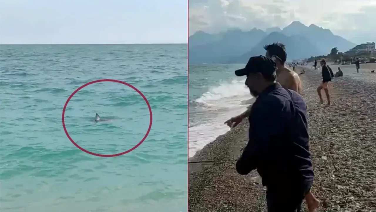 ŞOK- Dünyaca ünlü Konyaaltı Sahili'nde yaklaşık 2 metre uzunluğundaki köpek balığını gören vatandaşlar panik yaşadı.