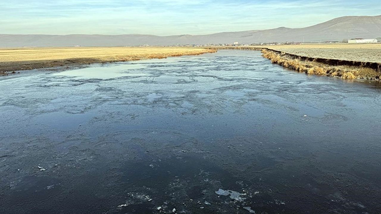 Dondurucu soğuklar nedeniyle Kura Nehri'nin yüzeyinin bir kısmı buzla kaplanmaya başlandı.