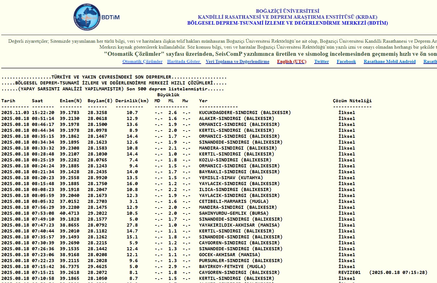 BALIKESİR'DE AZ ÖNCE DEPREM Mİ OLDU?