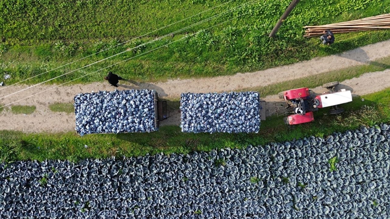 Kırmızı lahanada hasadın başladığını belirten Tosuner, "Dekar başına 5 ila 6 ton verim alınıyor. Ürünün bakımına göre bu değişiyor ama 5 tonun altına pek düşmüyor." dedi.