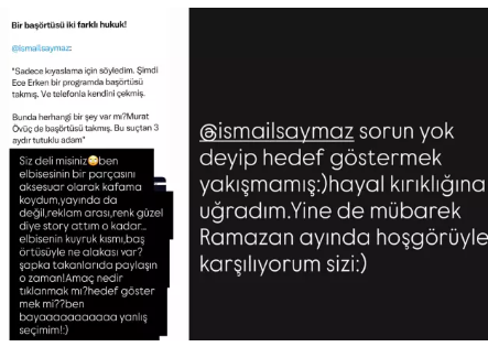 Erken ayrıca, "Sorun yok deyip hedef göstermek yakışmamış. Hayal kırıklığına uğradım. Yine de mübarek Ramazan ayında hoşgörüyle karşılıyorum sizi" diyerek tepkisini sürdürdü.Sosyal medyada ikiye bölünen tartışma kısa sürede gündemin üst sıralarına yükseldi.