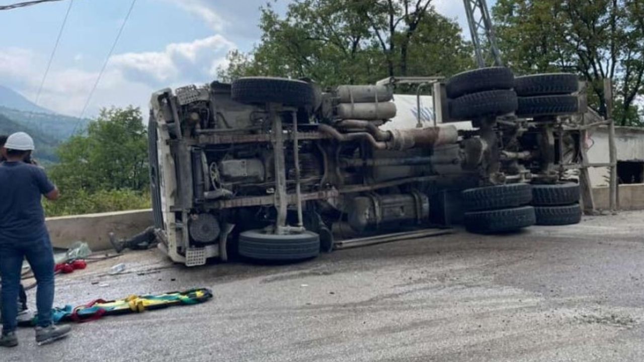 ŞOK- Kaza, Merkez Mahallesi İlkgelmez Mezarlığı yolunda meydana geldi. M.K. yönetimindeki beton mikseri, sürücüsünün virajda direksiyon hakimiyetini kaybetmesi sonucu devrildi.