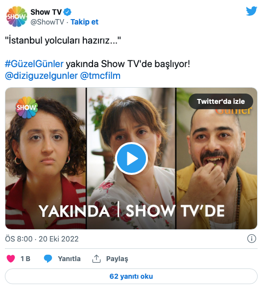 Binnur Kaya, Ecem Erkek, Leyla Tanlar, Zeynep Çamcı, Olgun Toker, Burak Dakak, Oya İloğulları, Orkuncan İzan, Duygu Köse ve Yıldıray Şahinler ve Seray Gözler’i bir araya getiren ‘Güzel Günler'in yayın tarihi ise henüz açıklanmadı.