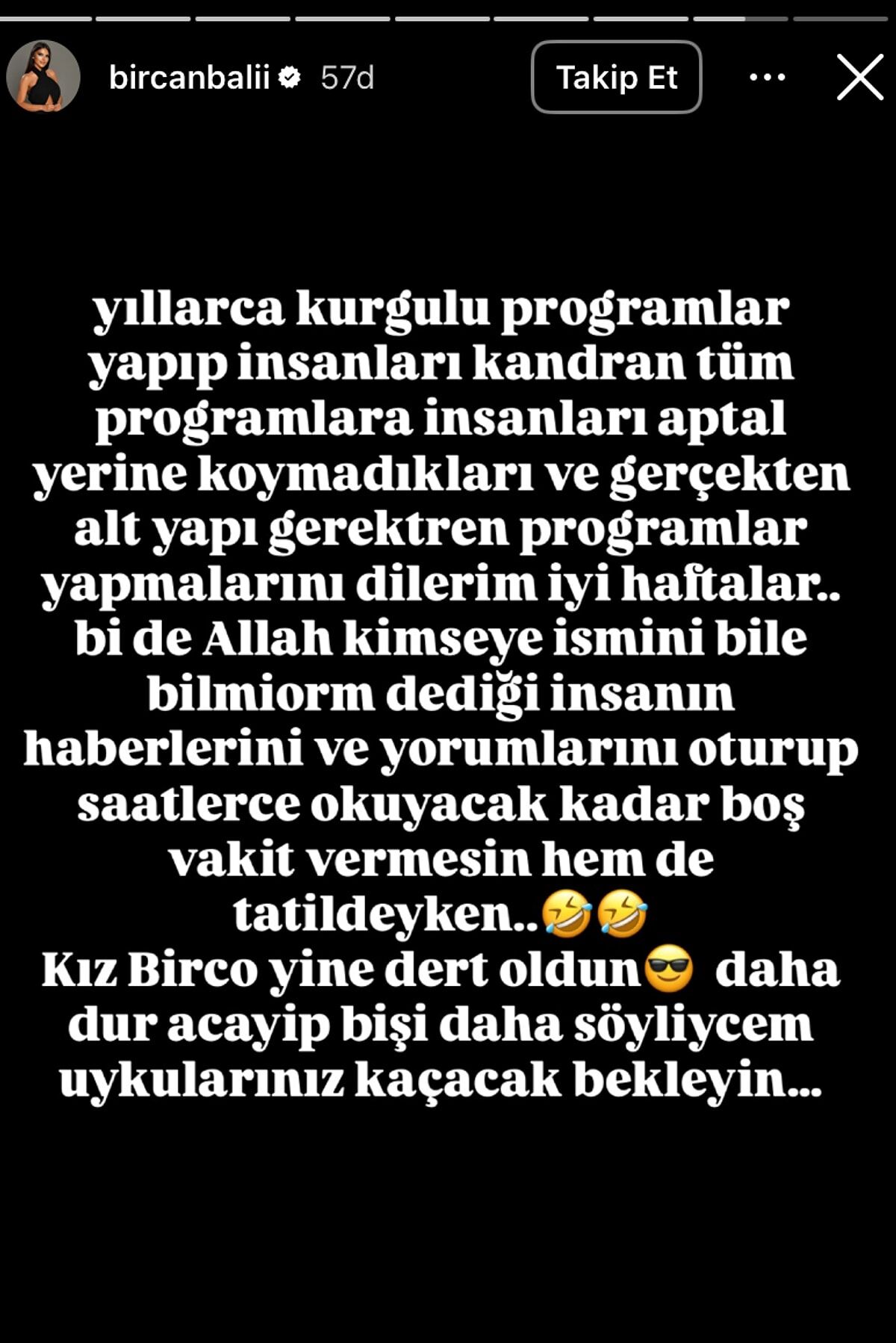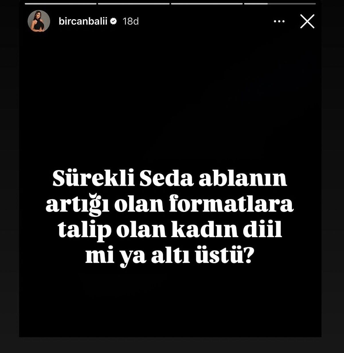 Ancak Topal’ın açıklamasının ardından Bircan Bali sosyal medya paylaşımlarına devam etti. Bali’nin kullandığı ifadeler şaşırttı: “Sürekli Seda ablanın artığı olan formatlara talip olan kadın değil mi ya altı üstü?”