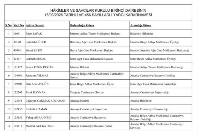 Antalya Cumhuriyet Başsavcısı Yakup Ali Kahveci ise Antalya Bölge Adliye Mahkemesi Cumhuriyet Savcılığına atandı.