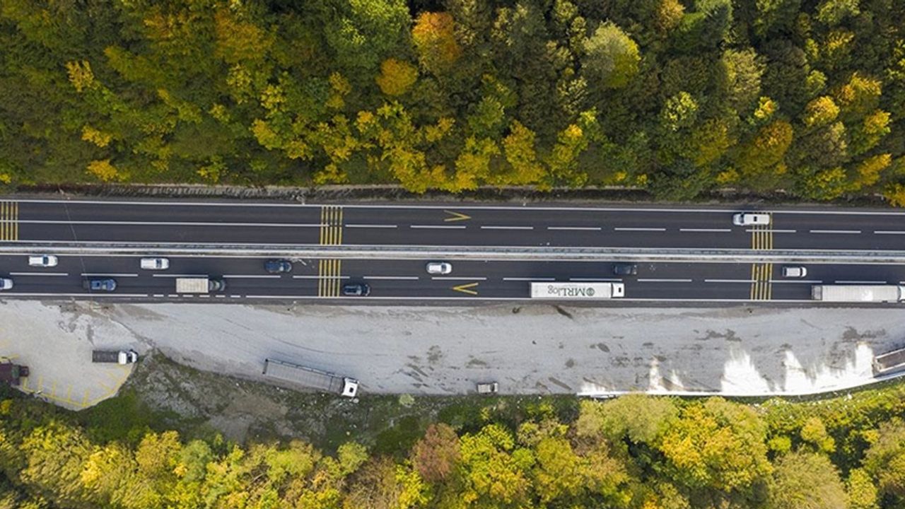 Sürücüler, kara yolunun Bolu kesiminde doğanın oluşturduğu manzara eşliğinde yolculuk yapıyor.