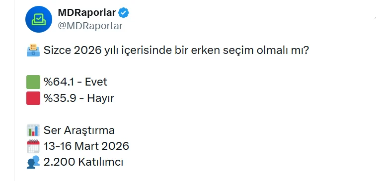 13-16 Mart 2026 tarihleri arasında 2.200 katılımcıyla gerçekleştirilen Ser Araştırma anketinin sonuçları ise şöyle oldu: