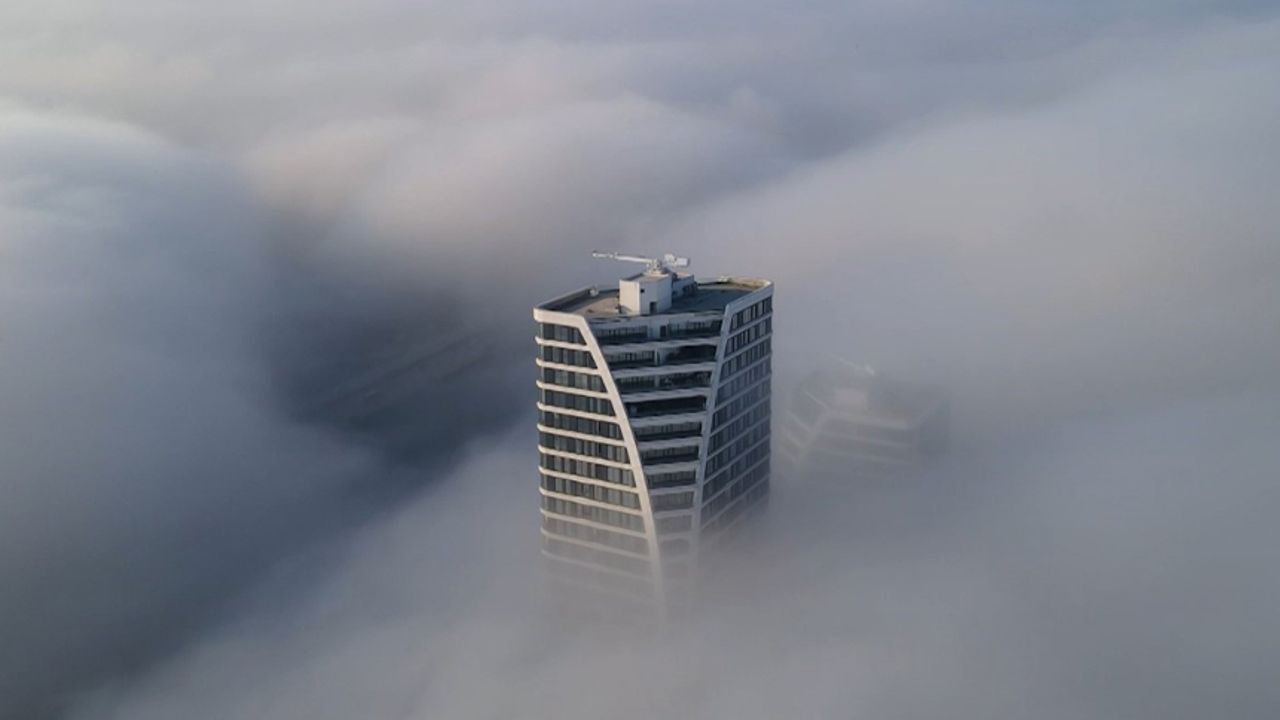 Bursa'da sabah saatlerinde etkili olan sis dron kamerasına yansıdı. Kentin büyük bölümü sis altında kaybolurken, Mudanya yolundaki yüksek binalar göğe yükselen görüntüleriyle dikkat çekti. Görüntülerde yalnızca bu binaların bulutların üzerine çıktığı görüldü.