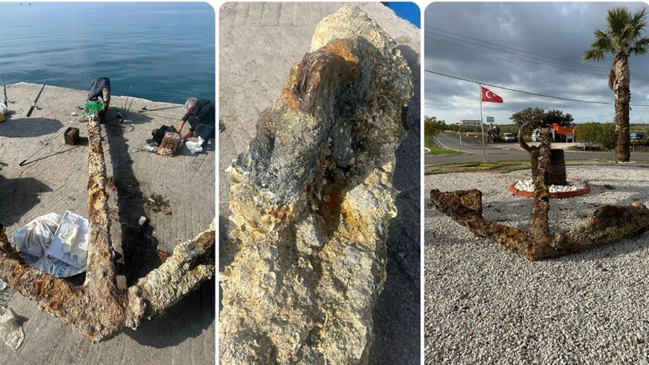 Oruçoğlu, büyük bir gemiye ait olduğunu düşündükleri bu çapanın yıllardır denizde kaldığını, şimdiki yerinin beldenin döner kavşağı olduğunu ifade etti.