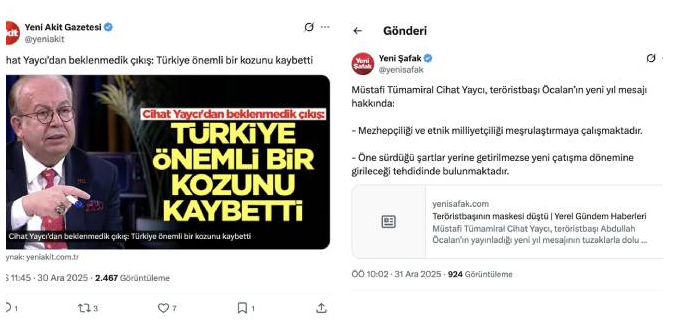 Abdullah Öcalan’ın yayınladığı yeni yıl mesajının tuzaklarla dolu olduğunu söyledi. Yaycı bu mesajın Türkiye’nin birlik ve bütünlüğüne tek millet kavramına açık bir karşı duruş niteliği taşıdığını belirtti.