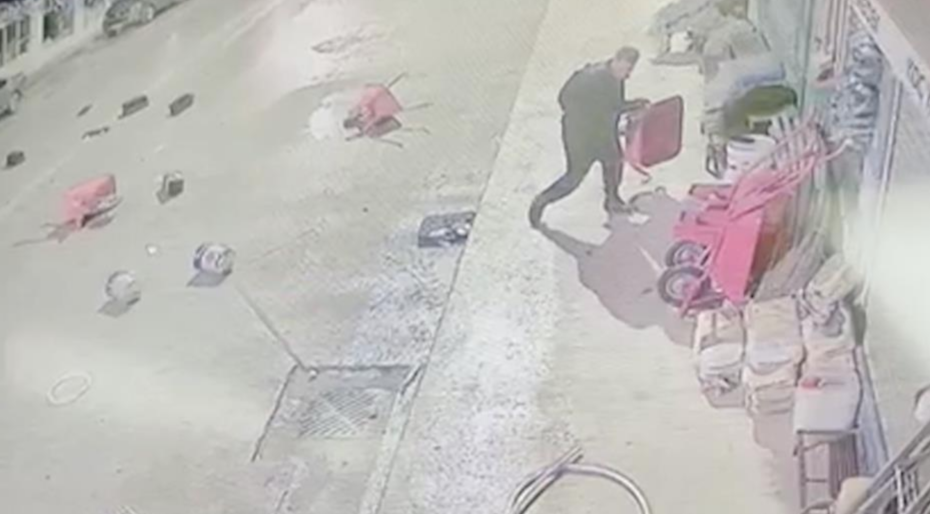 Öte yandan, olay anı ise saniye saniye güvenlik kamerasına yansıdı. Görüntülerde bir kişinin caddede yürüdükten sonra bir iş yerinin önüne geldiği görülüyor. Şahıs iş yerinin önünde bulunan malzemeleri tek tek alarak yola fırlatıyor. Şahıs diğer dükkanların önündeki eşyalara da zarar vererek bölgeden uzaklaşıyor.