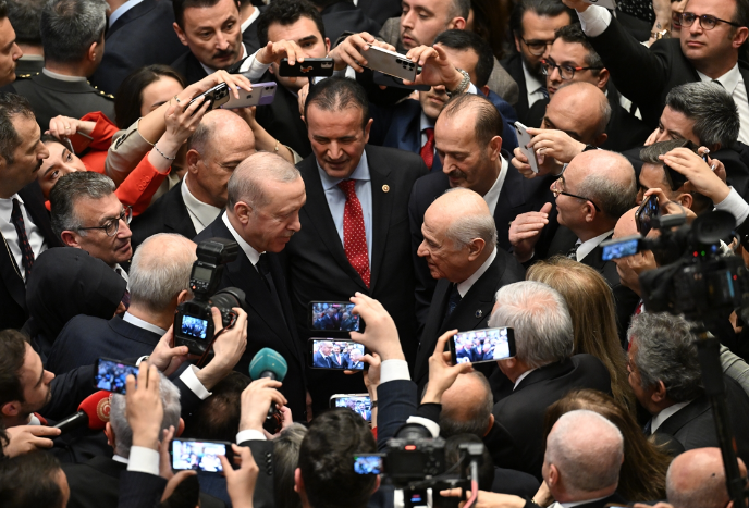 Resepsiyon sırasında basın mensuplarının sorularını yanıtlayan Erdoğan, CHP Genel Başkanı Özgür Özel ile bir görüşme gerçekleştirip gerçekleştirmeyeceğine dair soruya dikkat çekici bir yanıt verdi. Erdoğan, "Ben iktidar partisiyim, o ana muhalefet partisi. Bir defa bizim kitabımızda yok, yok. Niye görüşmeyelim?" ifadelerini kullanarak diyaloğa açık olduğunun mesajını verdi.