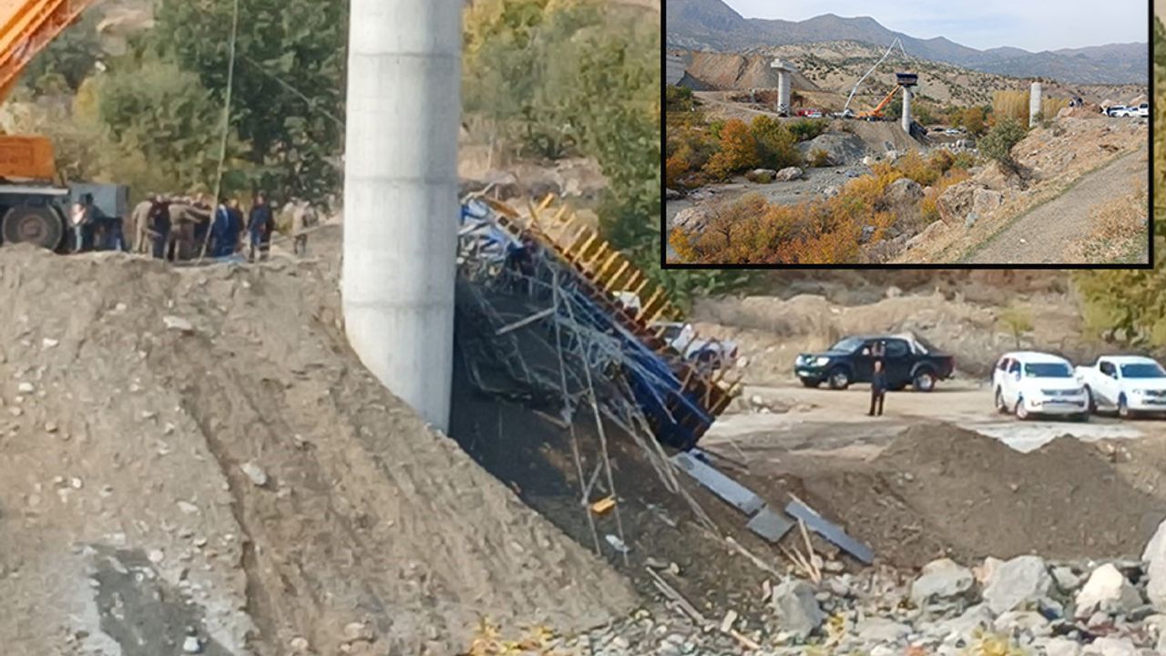 Diyarbakır’ın Kulp ilçesinde, Muş Karayolu'nun 2'nci kilometresinde yapımı süren bir viyadük inşaatında iskele çöktü.