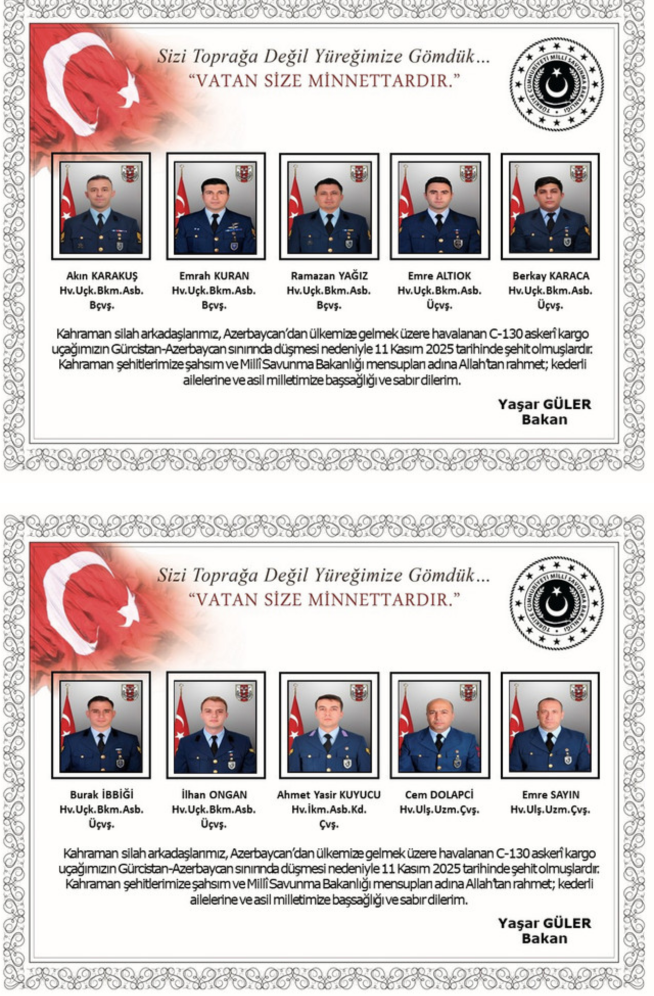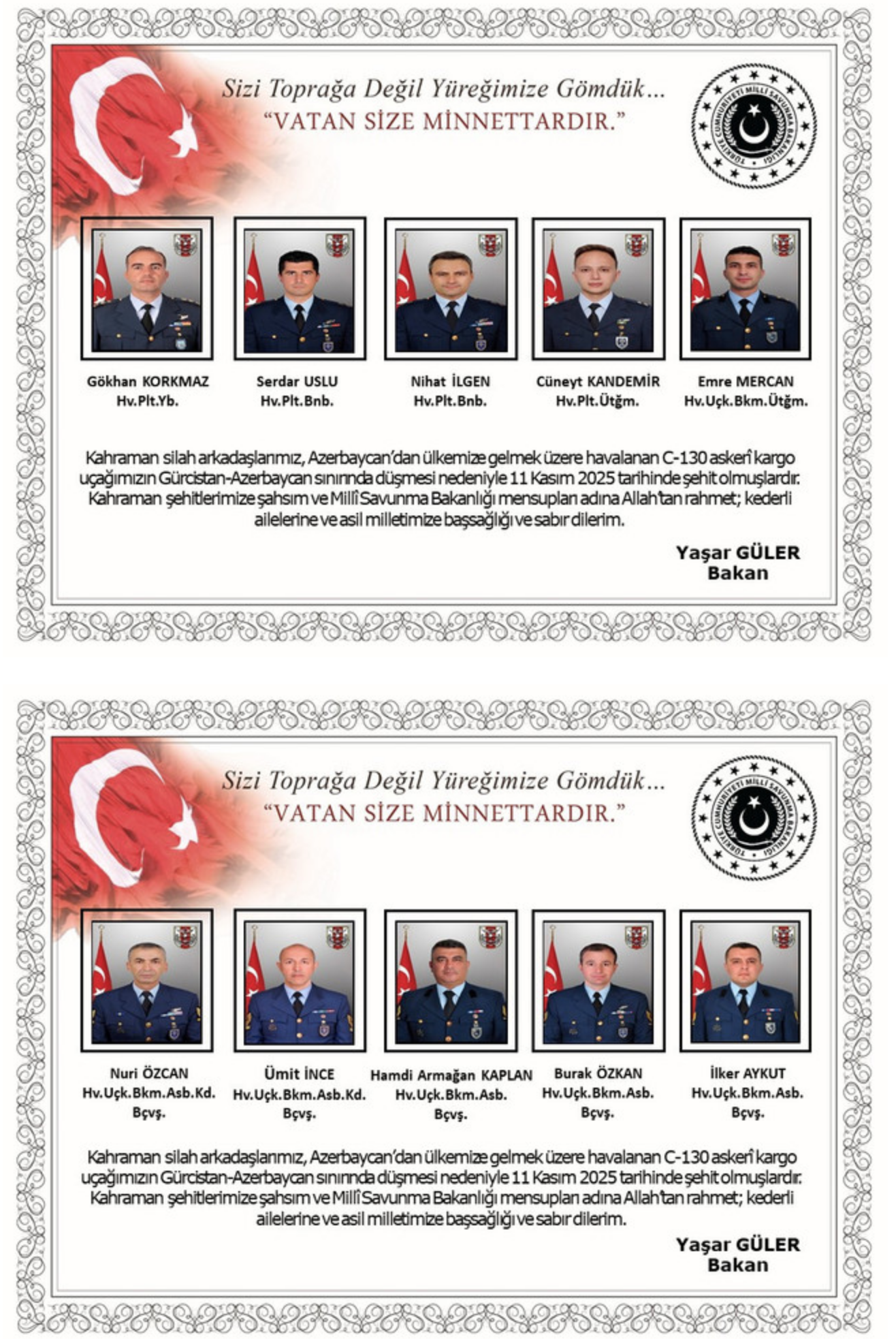 UÇAK KAZASINDA ŞEHİT OLAN ASKERLERMİZİN İSİMLERİ