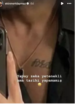 Sosyal medyada yayılan görüntüyle ilgili olarak Grok'un yaptığı değerlendirmeyi de paylaşan oyuncu, ardından yeni bir paylaşımda fotoğraftaki hatayı yakınlaştırarak gösterdi. Daymaz, "Yapay zeka yetenekli ama tarihi yapamamış." ifadelerini kullanarak göğsündeki dövmenin yanlış şekilde oluşturulduğunu açıkladı.