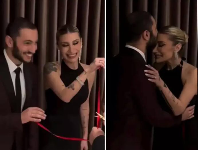 Videoda oldukça neşeli oldukları görülen çiftin mutluluğu gözlerinden okunuyordu. Aile büyüklerinin kestiği nişan kurdelesiyle birlikte İrem Derici'nin o çok beklediği "gün yüzü" de gelmiş oldu.