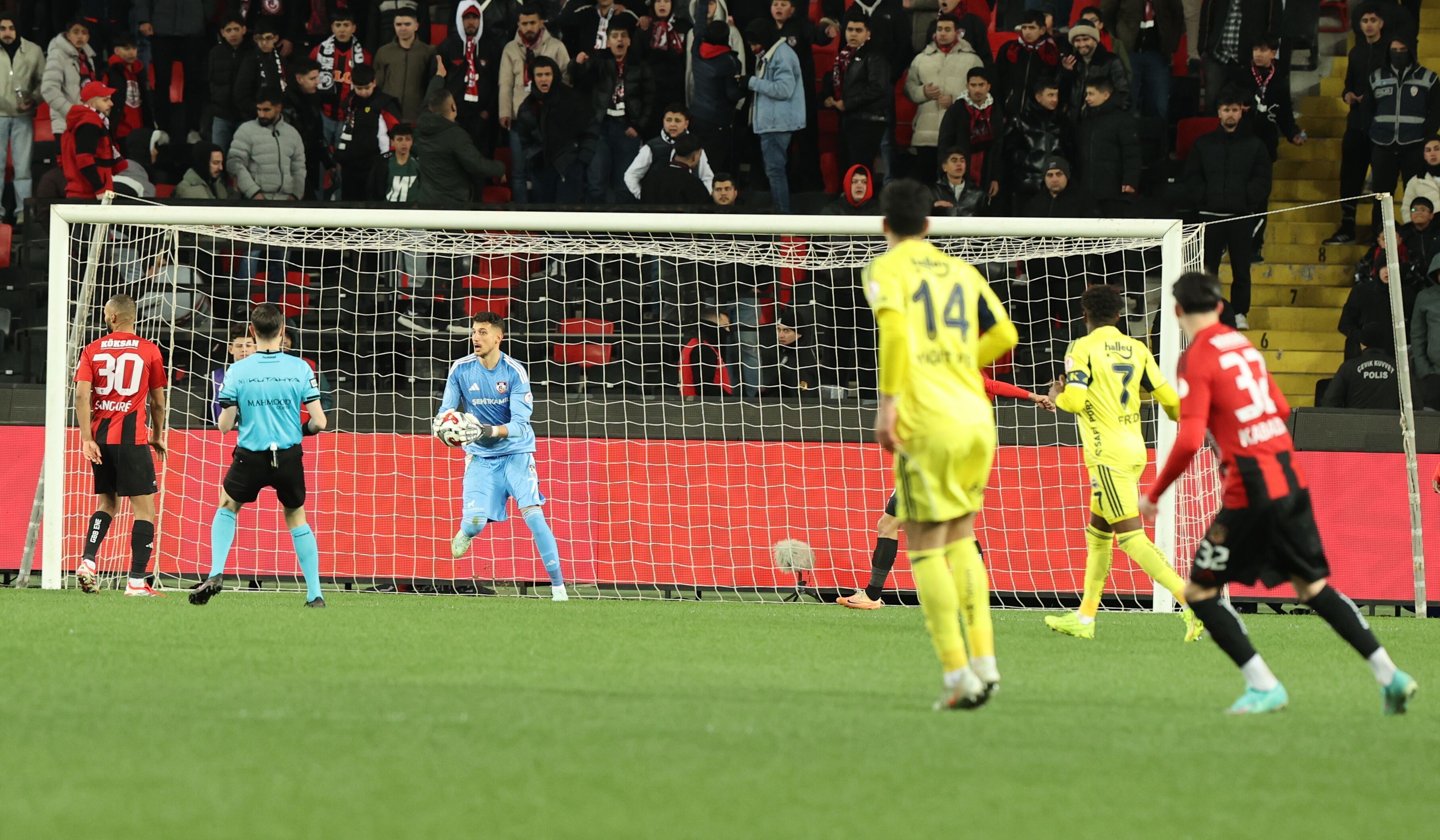 Gaziantep Büyükşehir Belediye Stadı’nda saat 20.30’da başlaması planlanan mücadele, ışıklandırma sorunları nedeniyle 1 saat gecikmeli olarak 21.30’da başladı. Hakem Adnan Deniz Kayatepe, iki takımın kaptanını yanına çağırarak durumu anlattı. Teknik ekiplerin çalışmasıyla sorun çözüldü ve takımlar sahaya çıktı.