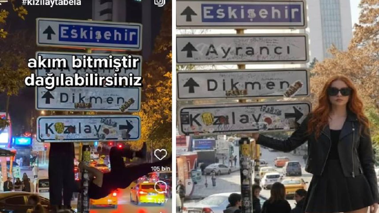 Ankara'nın simgelerinden biri haline gelen Kızılay'ı gösteren yol tabelası sosyal medyayı salladı. Kızılay tabelasına asılarak fotoğraf çektiren gençler sosyal medyada akım başlattı. Bunun üzerine tabelanın başına gelmeyen kalmadı. Üstüne etiket yapıştıran mı ararsın spor yapan mı? Sprey boyayla boyayan da oldu söküp evine götüren de. Hatta Ankara Büyükşehir Belediyesi tabelanın arkasına barfiks çubuğu bile koydu.