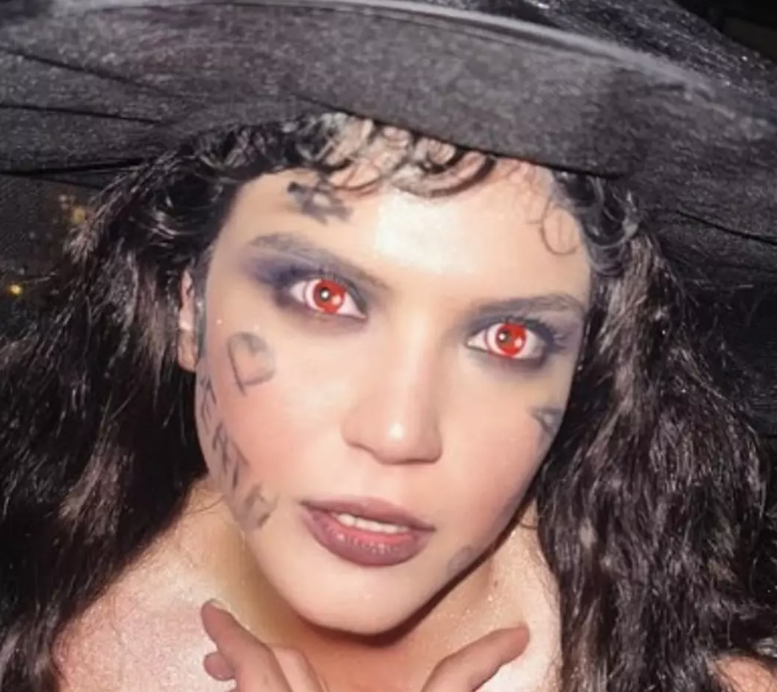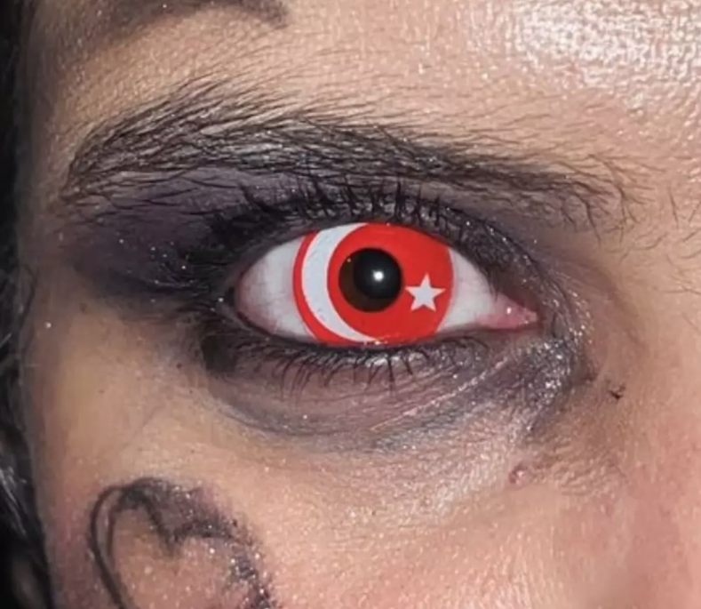 Cadılar Bayramı kutlamalarına katılan ünlü isim geceye özel olarak hazırlandı. Civelek'in gözündeki Türk bayrağı boyası dikkat çekti.