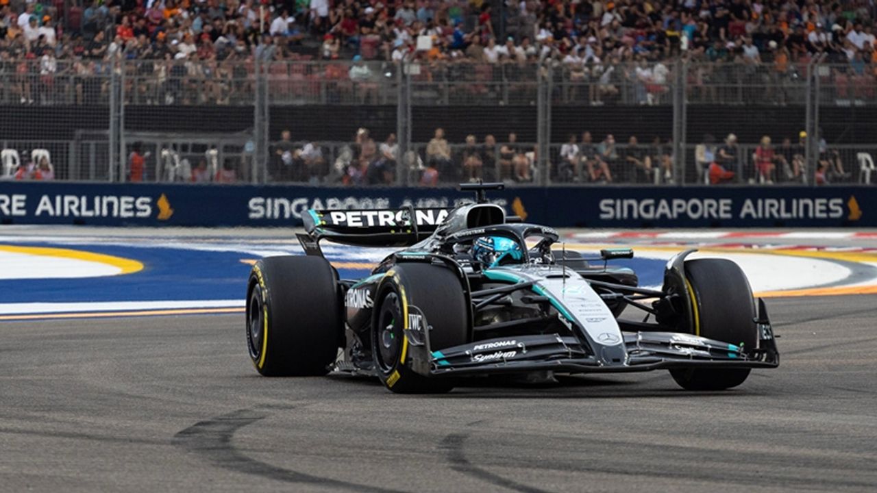 Singapur'da 4,9 kilometrelik Marina Bay Caddesi Pisti'nde 62 tur üzerinden yapılacak yarışın sıralama turlarında, 1 dakika 29.158 saniyelik derece elde eden Russell, ilk cebe yerleşti.