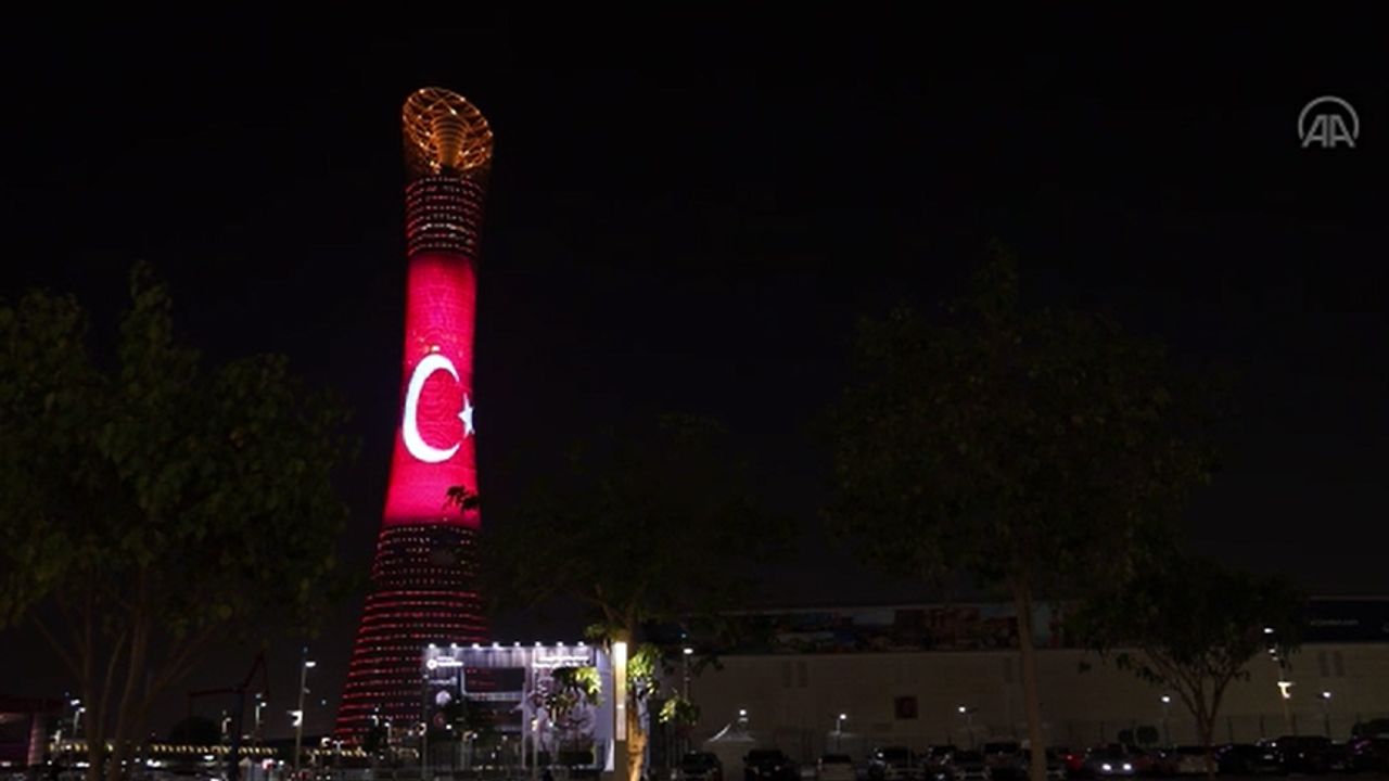 Türkiye Cumhuriyeti'nin kuruluşunun 99'uncu yıl dönümü, Katar'ın başkenti Doha'daki simgesel binaların dış cephesine, Türk bayrağı yansıtıldı. (AA)