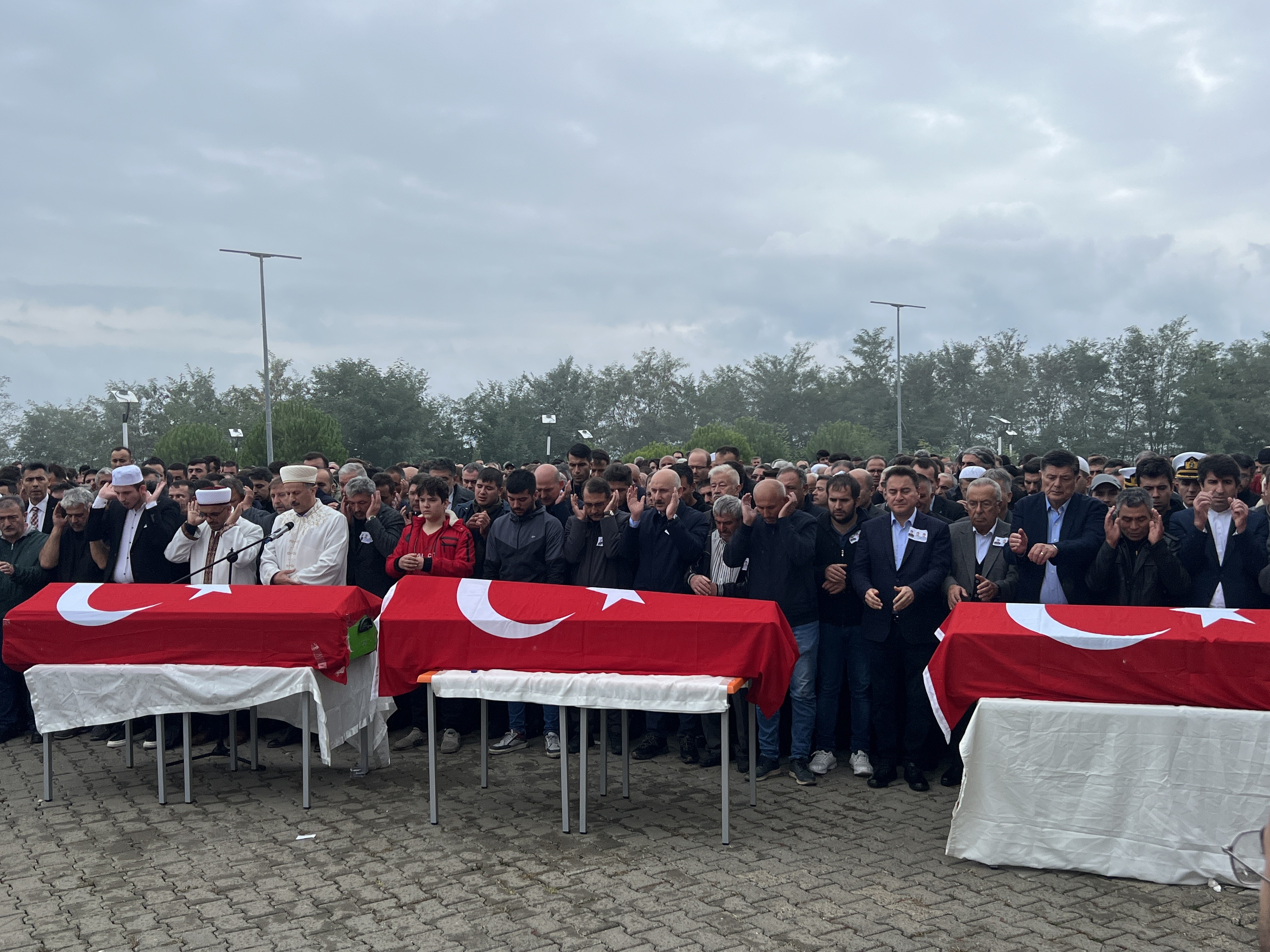 Amasra Çok Programlı Anadolu Lisesinin bahçesinde gerçekleştirilen cenaze töreninde 3 arkadaşın tabutları yan yana koyuldu.