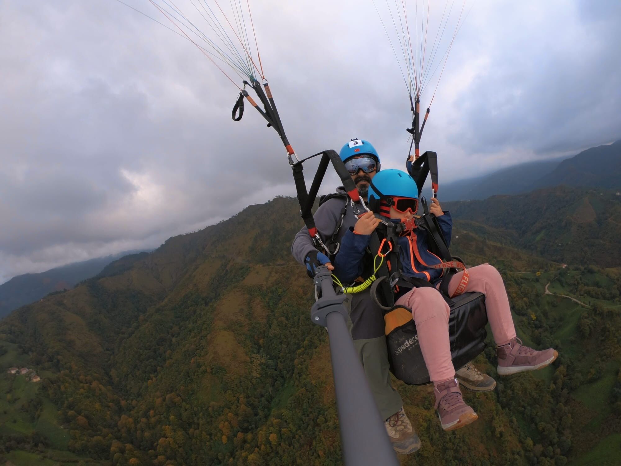 Kendilerine eşlik eden Derin Çelik ve ailesi, Derin’in ısrarları sonucu yamaç paraşütüyle havalanmasına izin verdi.