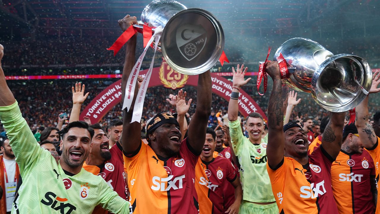 ŞOK - Trendyol Süper Lig'de üst üste 3, toplamda 25. şampiyonluğa ulaşan Galatasaray, RAMS Park'ta taraftarının önünde kutlama yaptı.