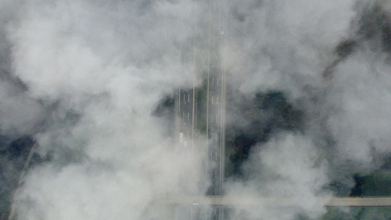 Bu arada bölgedeki ve kentin üzerini kaplayan sis bulutu havadan görüntülendi.