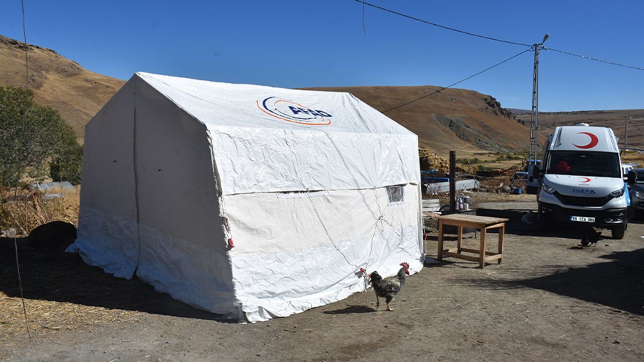 Artçı sarsıntılar sebebiyle evlerine giremeyip geceyi dışarıda geçirenler ile evleri hasar gören vatandaşlar halen bu çadırlarda kalıyor.