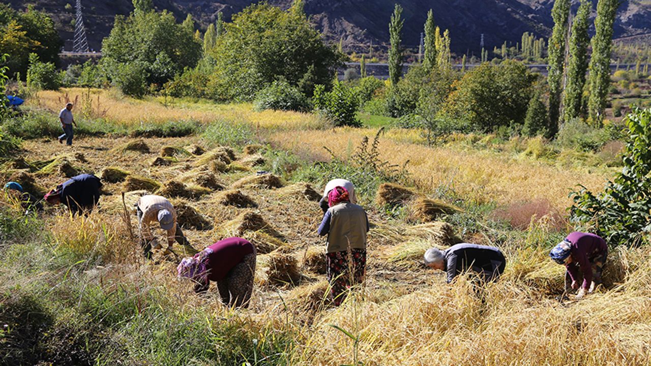 Hasat ise 200 yılık geleneksel yöntem olan oraklarla biçilerek ve taşla dövülerek yapıldı.