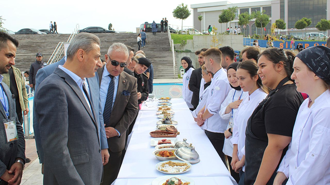 ‘Sinop Lezzetleri’ programı ikinci gününde birbirinden değişik hazırlanan tatlarla lezzetlendi. Öğrenciler Arası Yemek Yarışması, Geleneksel Sinop Lezzetleri ve Sinop Lezzetleri olmak üzere 3 farklı kategoride yarışan katılımcılar birincilik için hünerlerini sergiledi.