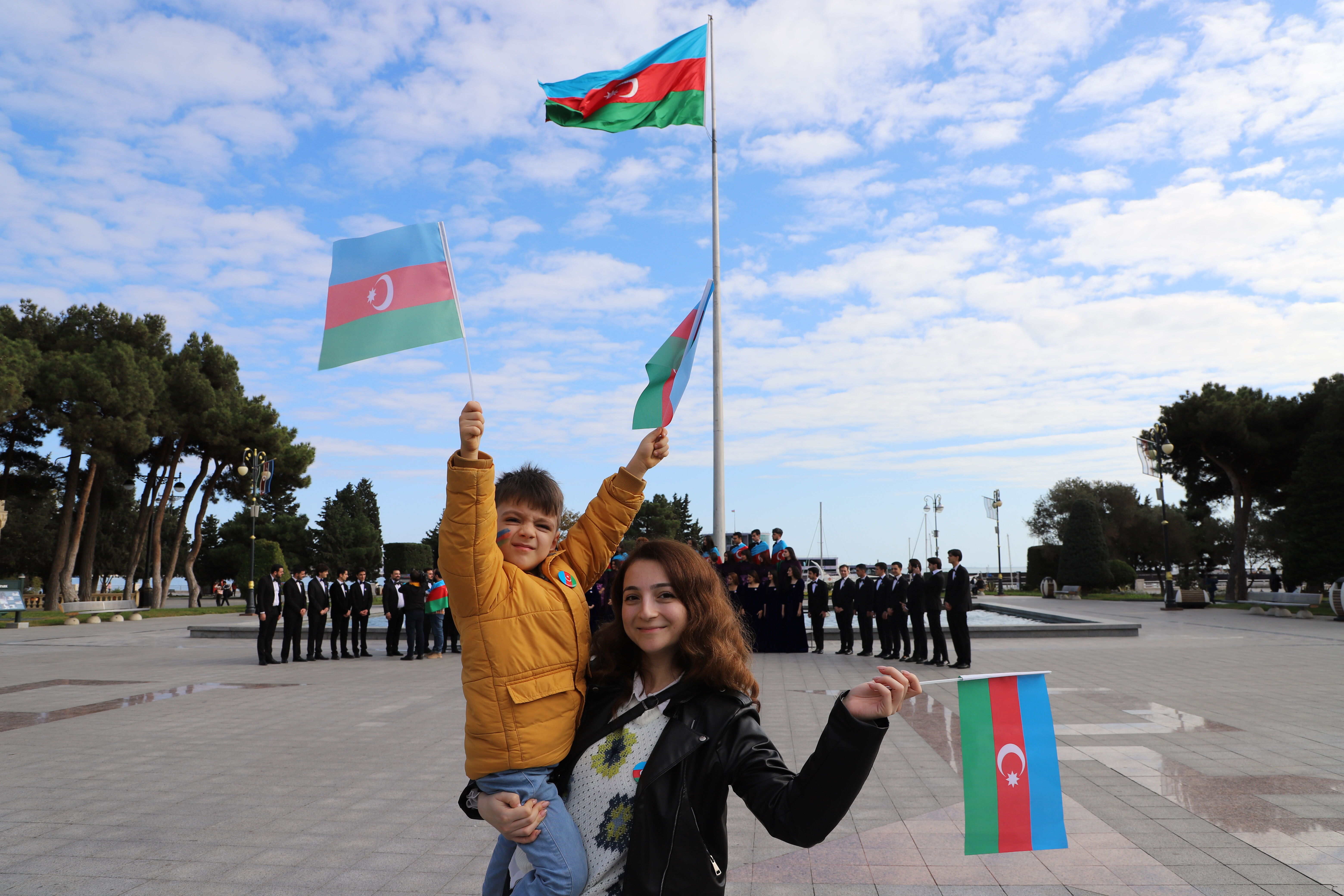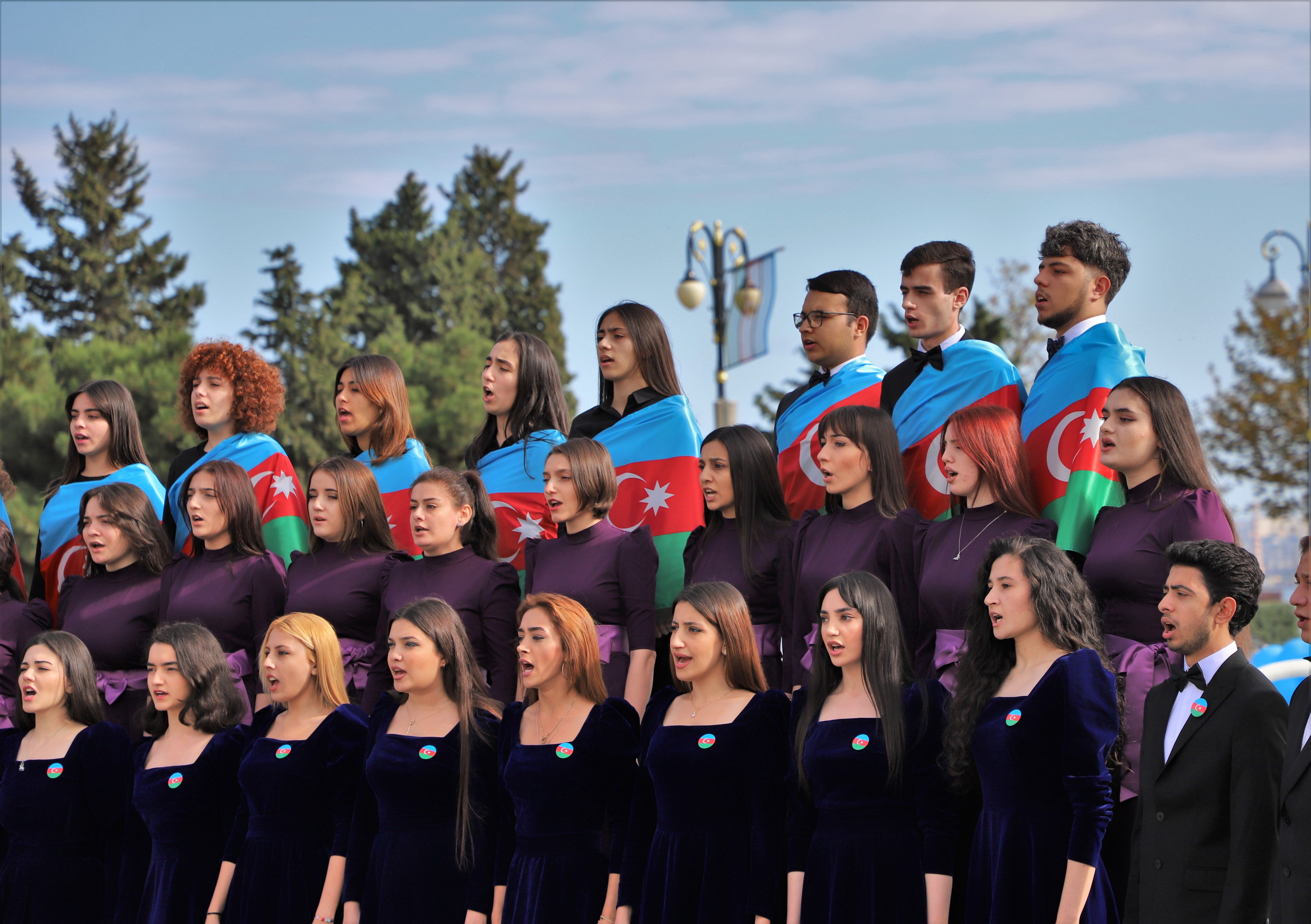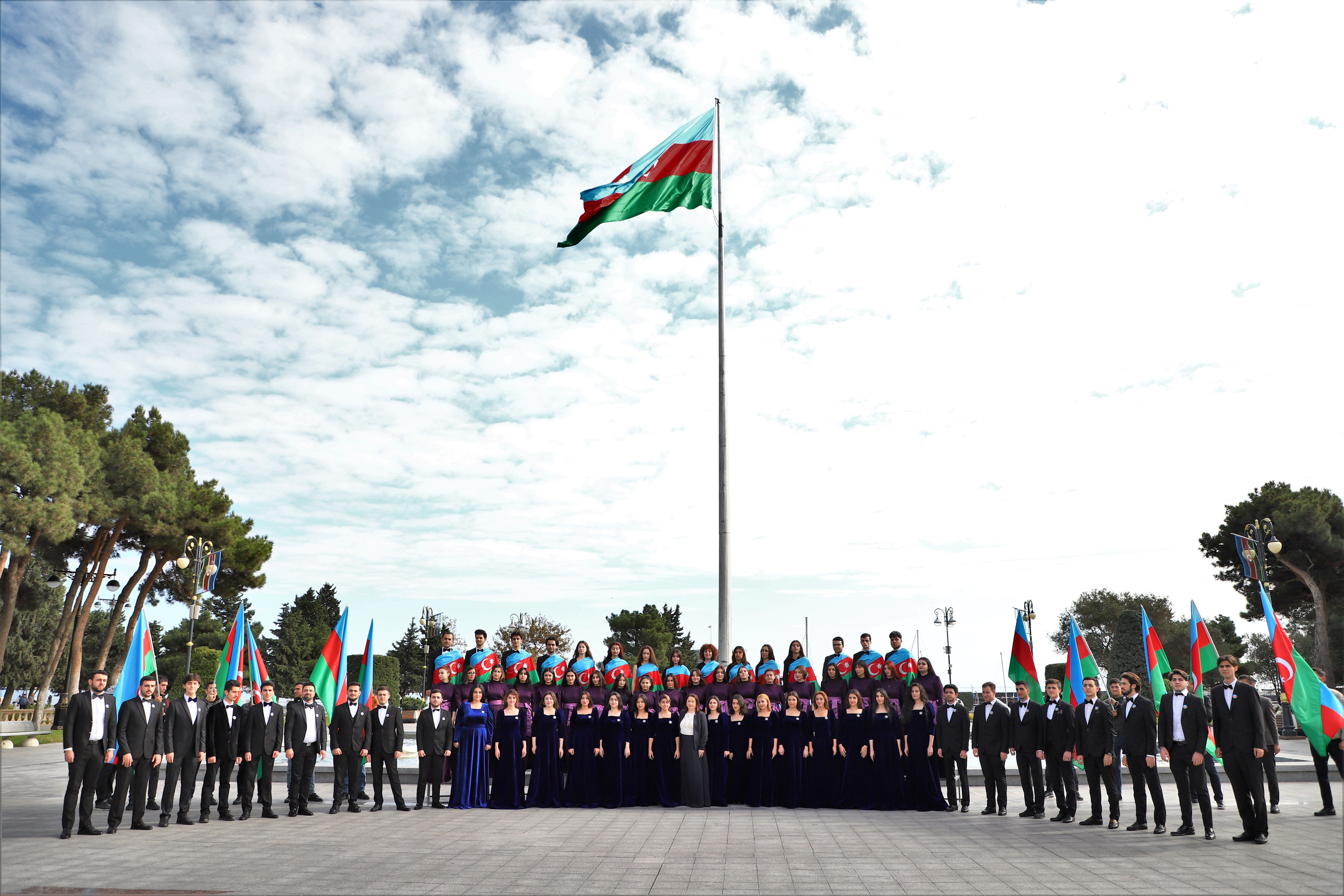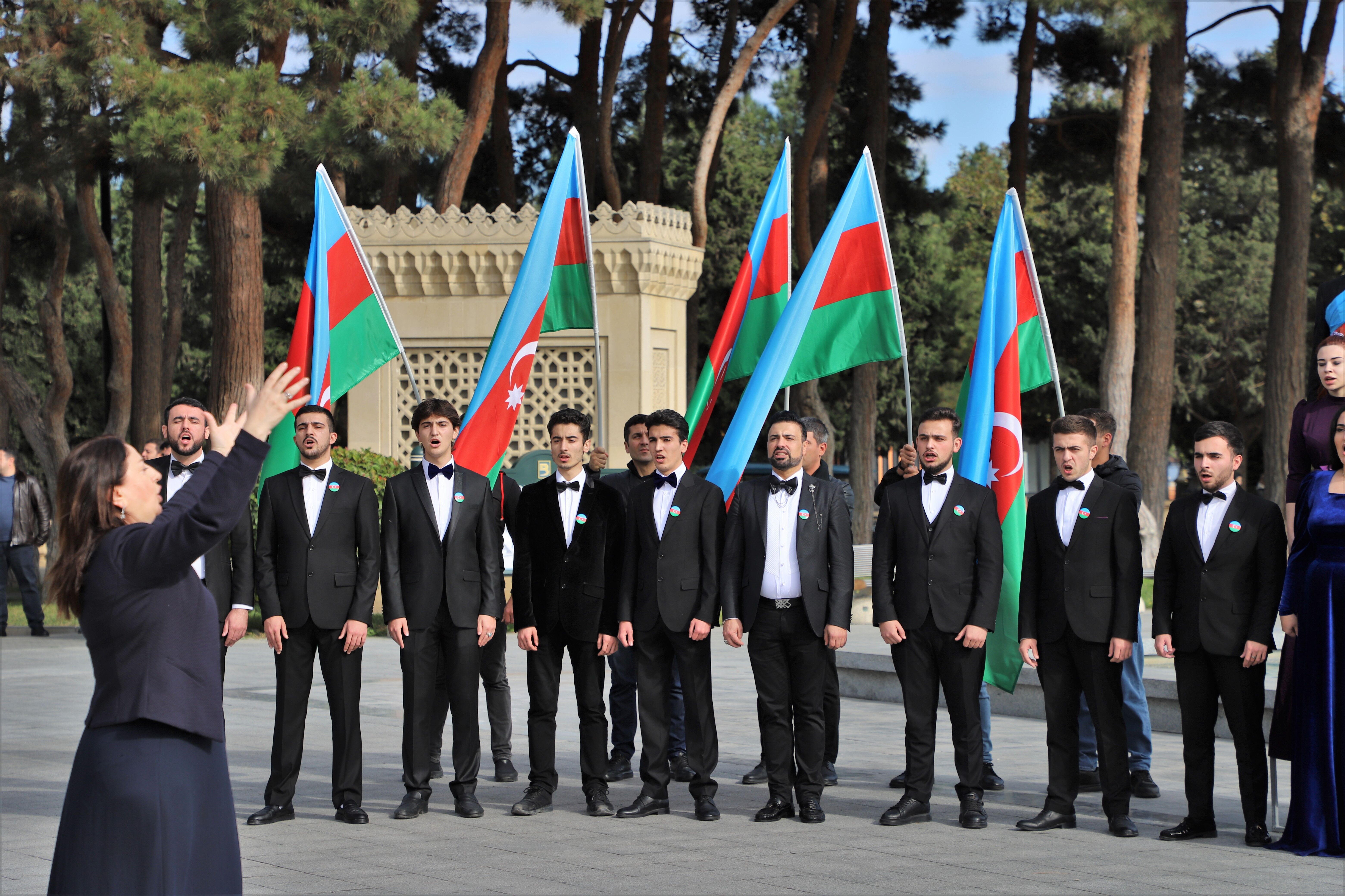 Koroların Azerbaycan Milli Marşı'nı seslendirmesi ile başlayan etkinlikte, gökyüzüne Azerbaycan bayrağının renklerinden oluşan balonlar bırakıldı.