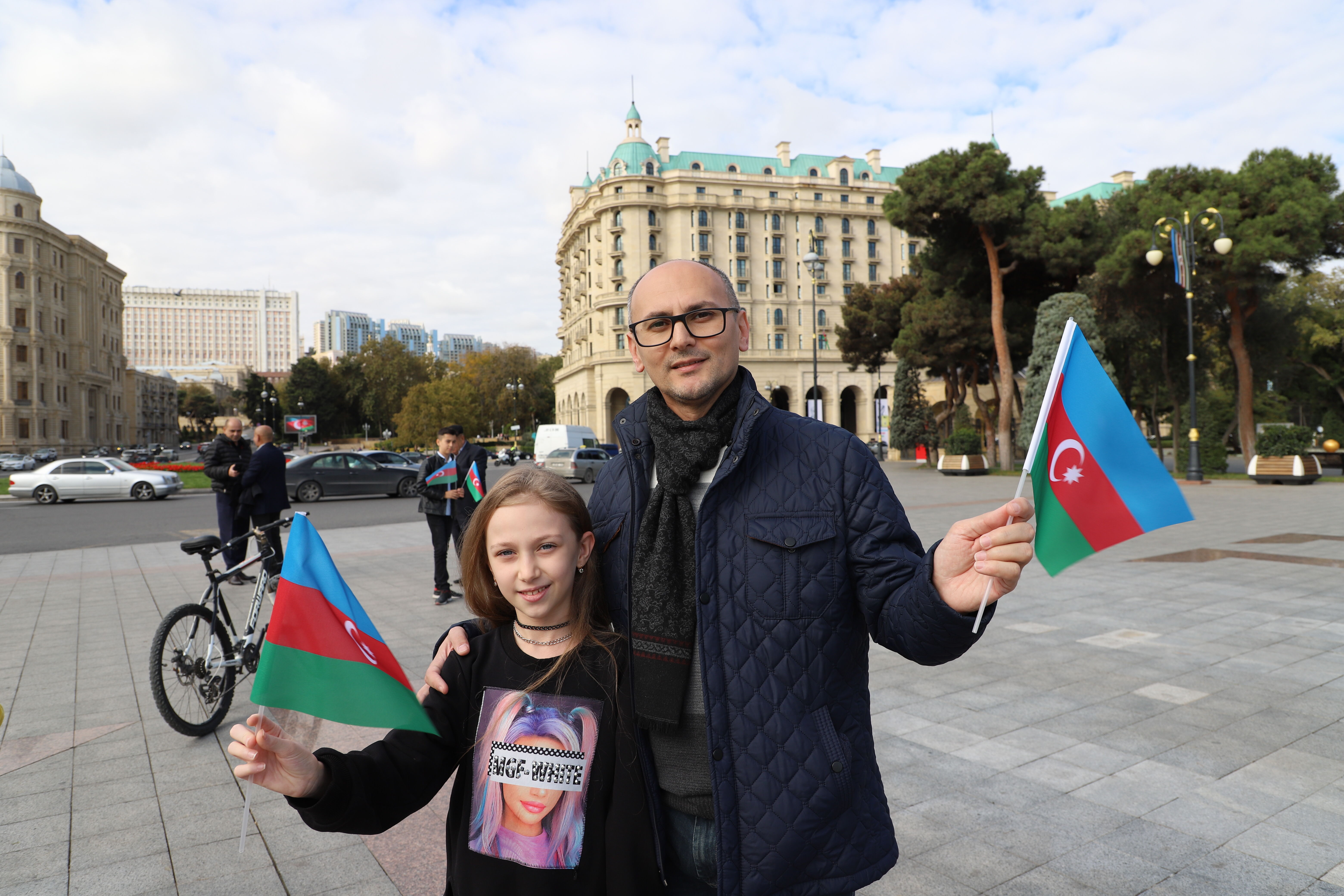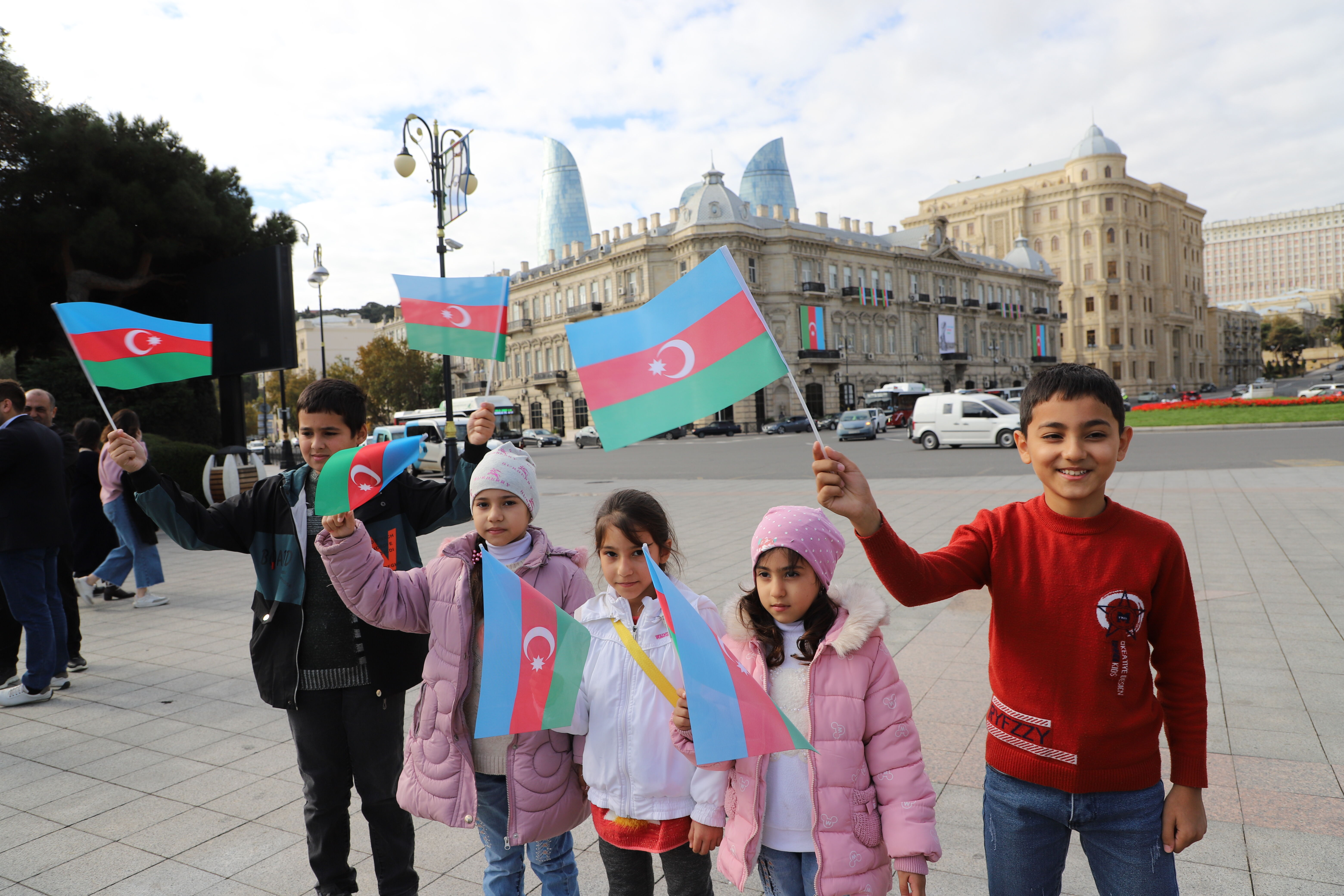 Ellerinde bayrak taşıyan vatandaşlar, Bayrak Günü dolayısıyla birbirini kutladı, sevinç gösterisinde bulundu. Ulusal Park'ta bayrağı olmayanlara bayrak dağıtıldı.