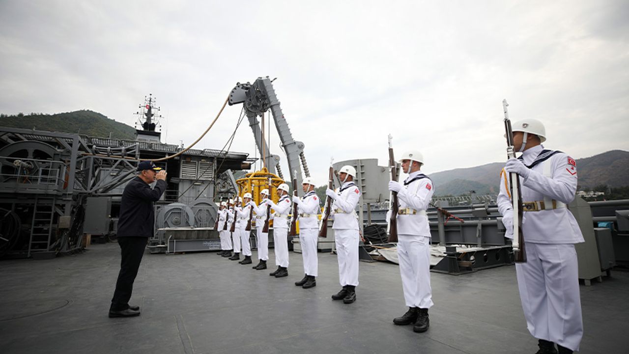 Marmaris açıklarındaki yerli ve milli üretim gemiye helikopterle inen Bakan Akar ve beraberindeki komutanlara ilk olarak tatbikata ilişkin brifing verildi. Brifingin ardından köprüüstüne geçen Akar ve komutanlar buradan faaliyetleri takip etti.