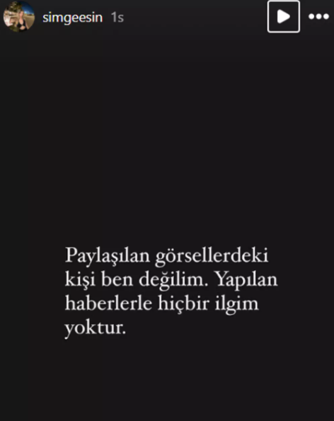 Simge Esin Instagram hesabının hikaye bölümünde açıklama yazarak takipçileriyle paylaştı. Barış Alper Yılmaz'dan konuyla alakalı açıklama gelmezken Simge Esin, "Paylaşılan görsellerdeki kişi ben değilim. Yapılan haberlerle hiçbir ilgim yoktur" ifadelerini kullandı.