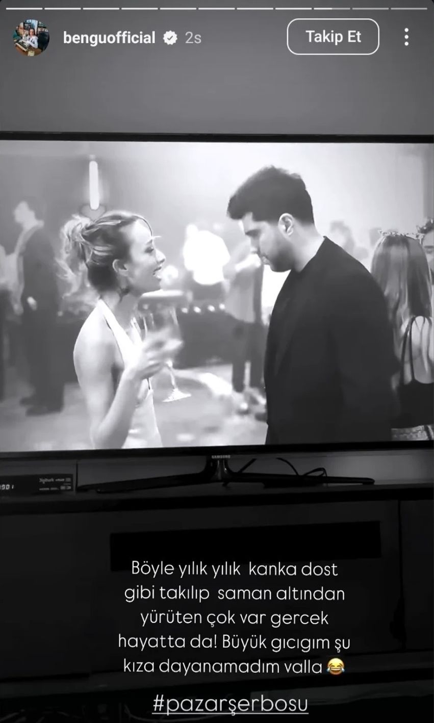 Şarkıcı, SHOW TV ekranında izleyicisiyle buluşan 'Kızılcık Şerbeti dizisinin 99'uncu bölüm final sahnesinde 'Fatih'in 'Defne' karakteriyle yakınlaşma anını paylaşarak şu ifadeleri kullandı: "Böyle yılık yılık kanka, dost gibi takılıp saman altından yürüten çok var gerçek hayatta da! Büyük gıcığım şu kıza dayanamadım vallahi."