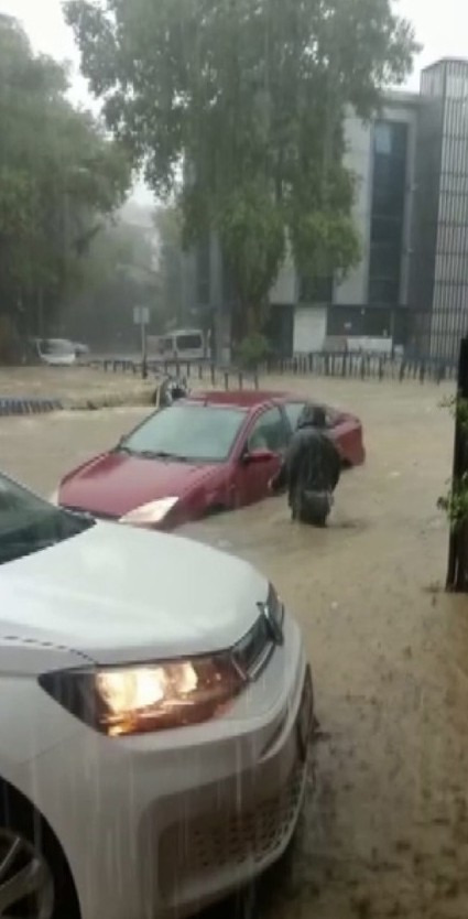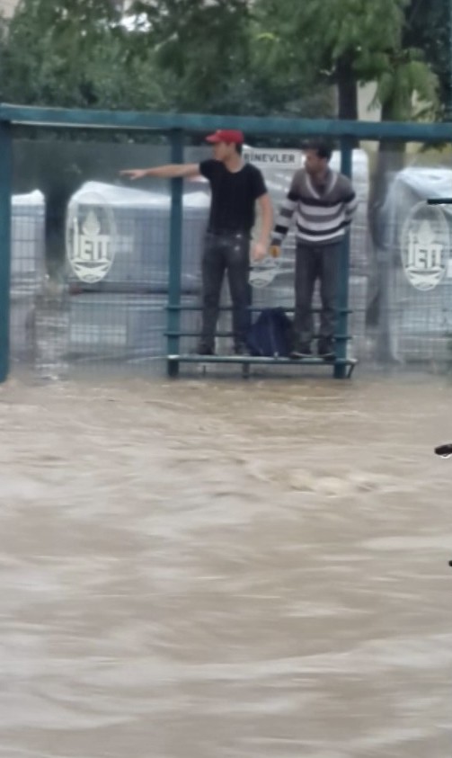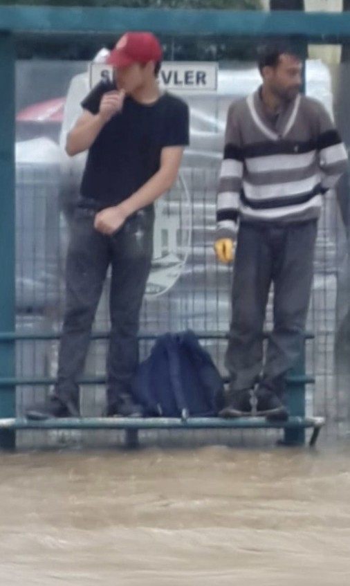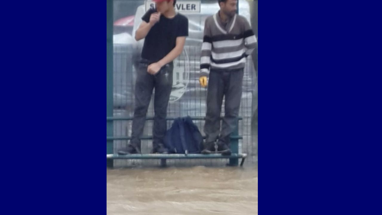 Taşkının yaşandığı anlar vatandaşların cep telefonu kamerasına yansıdı. Görüntülerde, şiddetli yağış sonucu sokakta su taşkının oluştuğu, mahsur kalan vatandaşların otobüs duraklarının üzerine çıkarak beklediği, araçların yollarda mahsur kaldığı, esnafın dükkanlarından suyu tahliye etmeye çalıştığı görülüyor.