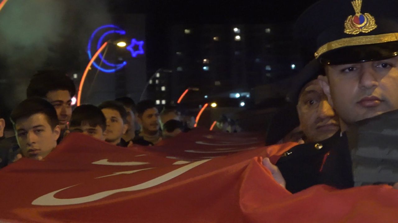 7'den 70'e vatandaş, bin metre uzunluğundaki Türk bayrağıyla Devlet Bahçeli Bulvarı'ndan Cumhuriyet Caddesi'ne kadar yürüdü.