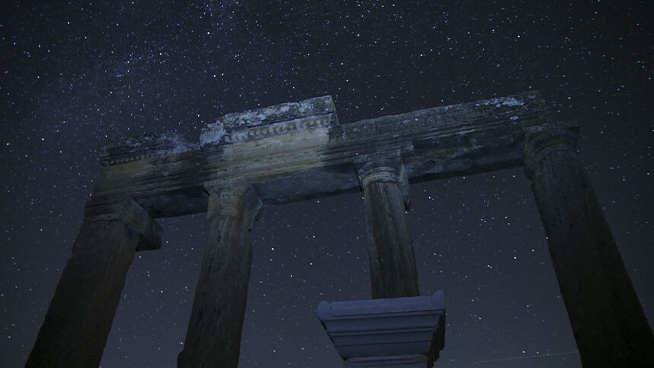 Büyük İskender'in Anadolu seferi sırasında Makedonya'dan gelenlerin yerleştiği ve daha sonra Bergama Krallığı ve Roma İmparatorluğu'na bağlanan Uşak'ın Ulubey ilçesindeki Blaundos Antik Kenti'nde, uzun pozlama tekniğiyle çekilen fotoğraflarda antik yapılar ve yıldızlar büyüleyici bir şekilde bir araya getirildi. Bu antik kent, derin vadilerle çevrili bir yarımada üzerine kurulmuştur.
