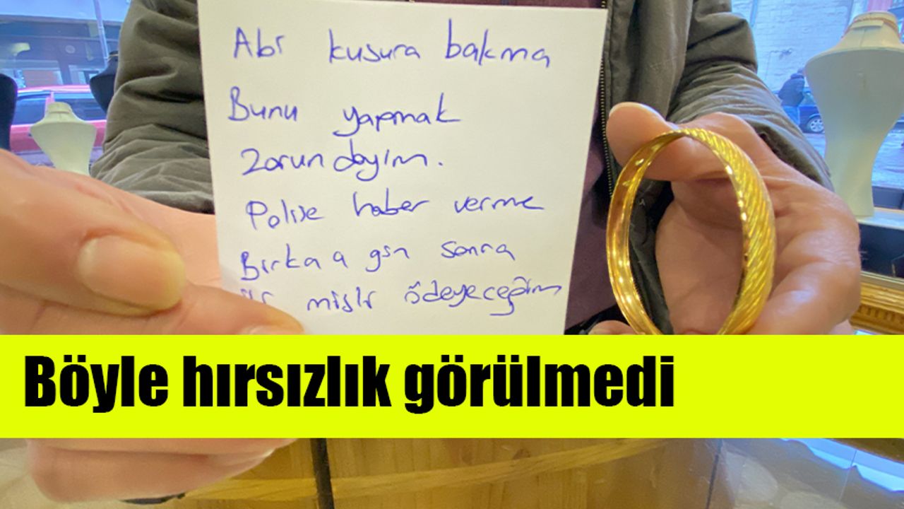 İşyeri sahibinin daha büyük bir bileziği göstermesi üzerine fiyatını soran İ.B., bileziğin içerisine isim de yazdırmak istedi. Fiyatta anlaştıktan sonra kredi kartı ile ödeme yapacağını söyleyen İ.B., işyeri sahibine yönelerek “Kusura bakma yapmak zorundayım” deyip notu tezgaha bıraktı. 8 bin 500 lira değerindeki bileziği de alarak kaçmaya başladı. Danış bilezikle kaçan İ.B.’yi tezgahın arkasından yakalamaya çalışsa da başarılı olamadı.